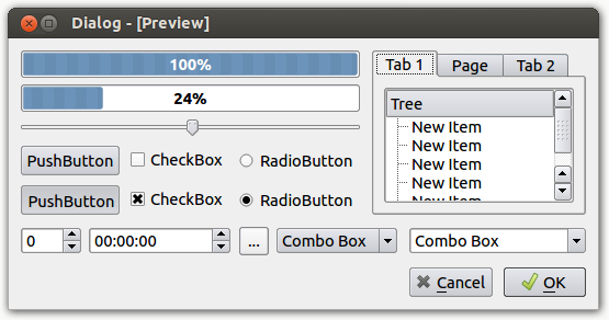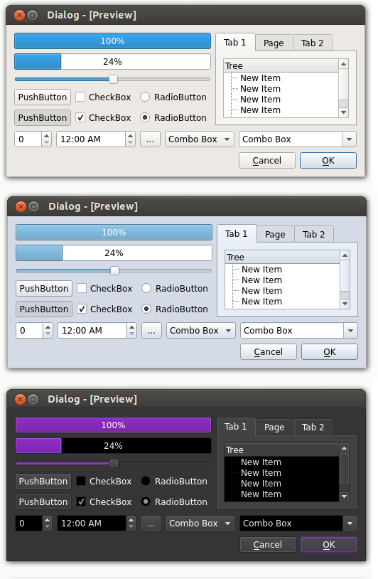 Given those use cases, I thought it would still make sense to have a simple non-native look and feel with Qt that could handle all these use cases but look a bit more fresh and up-to-date. We aimed for a clean look that puts focus on the content, rather than trying to stand out on it's own so that it could be used in a wide range of contexts. The result is Fusion style as shown in a few different color configurations here.: