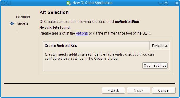 Example of an improvement in Qt Creator 3.0. You will now get a message if your SDK is not yet set up correctly for use with Android.