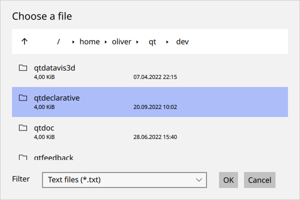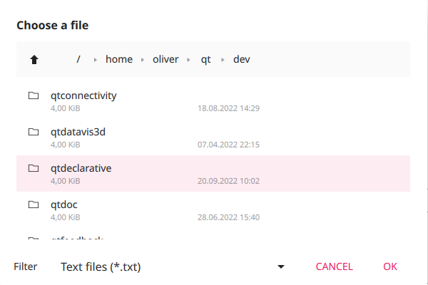With the release of Qt 6 we removed the previous Qt Quick Controls 1 module, which the Qt Quick Dialogs module depended on at the time. Because of this, we ended up rewriting the module from scratch, and we've been gradually introducing the various dialogs back into the module since Qt 6.2. The new fallback dialogs are now based on the Qt Quick Controls 2 module, which means that we've taken extra care to ensure that they all look good with each Qt Quick Controls Style.