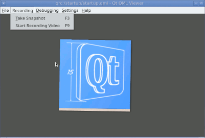 So an Item can acquire a Window at runtime, with Javascript callbacks to handle reparenting and resizing. But actually, we can add other features to this wrapper Window: for example, we can add the sorts of features that qmlviewer used to have. The features I miss the most are that it was easy to capture screenshots, or record an animated gif to easily share what some animation looks like. Let's start by adding a MenuBar with menu items to be able to open a different QML file, quit the application, and to record a timed series of screenshots.