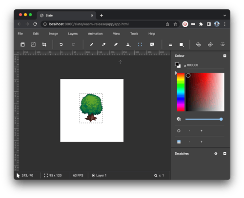 Slate - A sprite drawing app that demonstrates a full "main window" style application with menus and toolbars as well as save and load functionality.