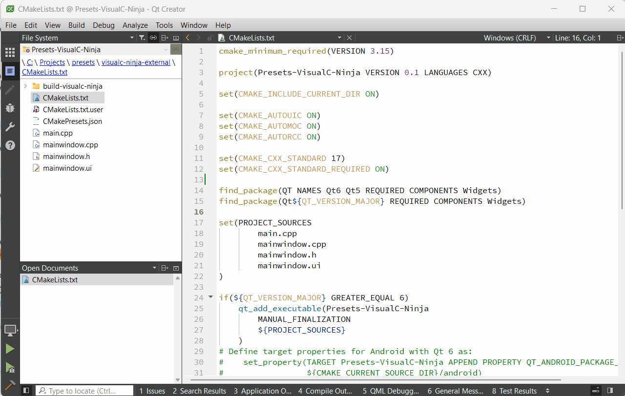 Now the CMakePresets.json looks like this: