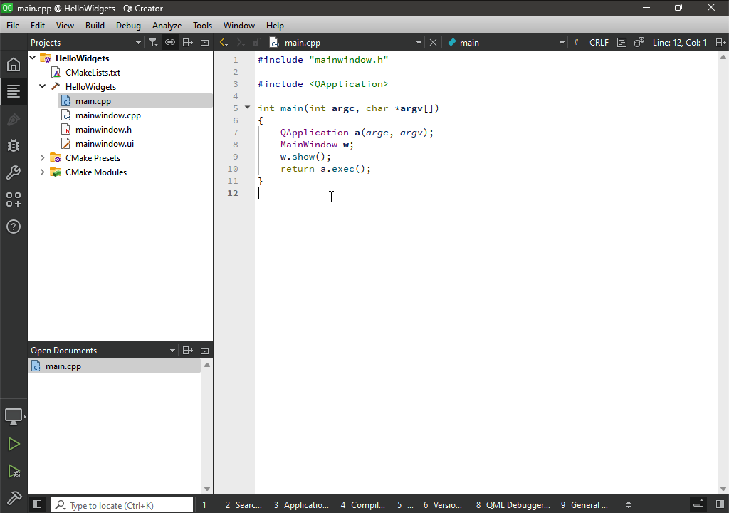 add_executable(HelloWidgetsGlob ${sources}) target_link_libraries(HelloWidgetsGlob PRIVATE Qt6::Widgets)