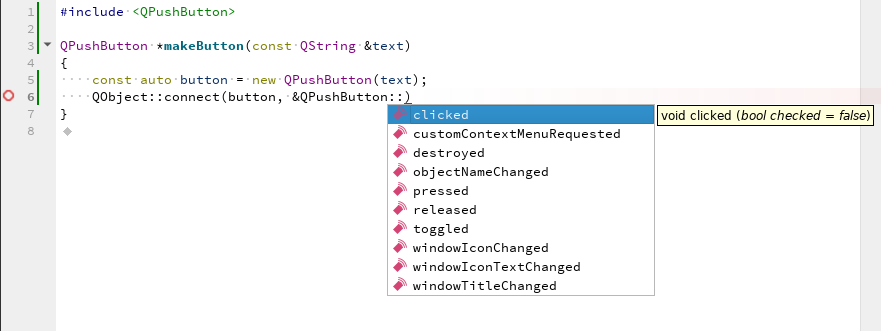 - We now detect if a completion request happens at the second argument of a connect() call and in that case offer only signals, as nothing else can legally appear there.
