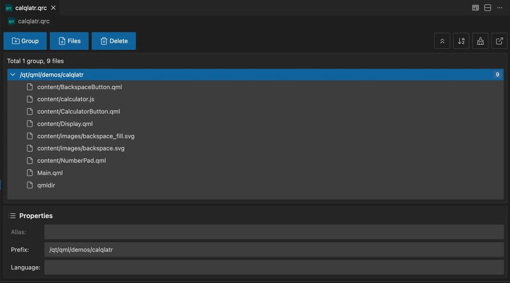 Managing Qt Resource Collection files has never been easier. The new QRC editor provides a visual interface for modifying your .qrc files without manual XML editing.