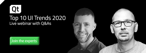 A webinar not to miss is the top trends of user interface design for 2020. Bringing together observations and research on what is 'in' for web, desktop, and embedded GUI design, it will hopefully help inspire and guide your work for the year ahead.