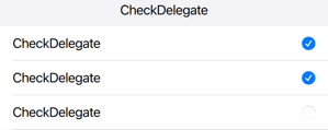 Delegates correspond to views in iOS. Each delegate draws a background similar to the Table View Cell in iOS and make use of the respective indicators. The CheckDelegate and the SwitchDelegate use the same indicator as the CheckButton and the Switch controls respectively, but the RadioDelegate unlike the RadioButton, uses a checkmark that resembles the one used in iOS when selecting an option from a list.