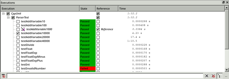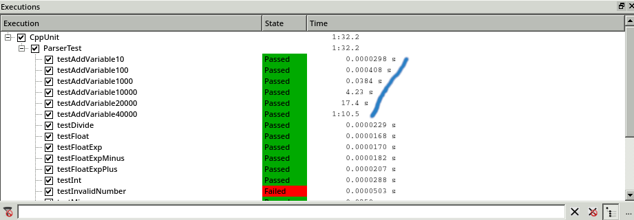 By inspecting the Executions window, we see that the speed issue is resolved. The execution time of the tests no longer grows exponentially.