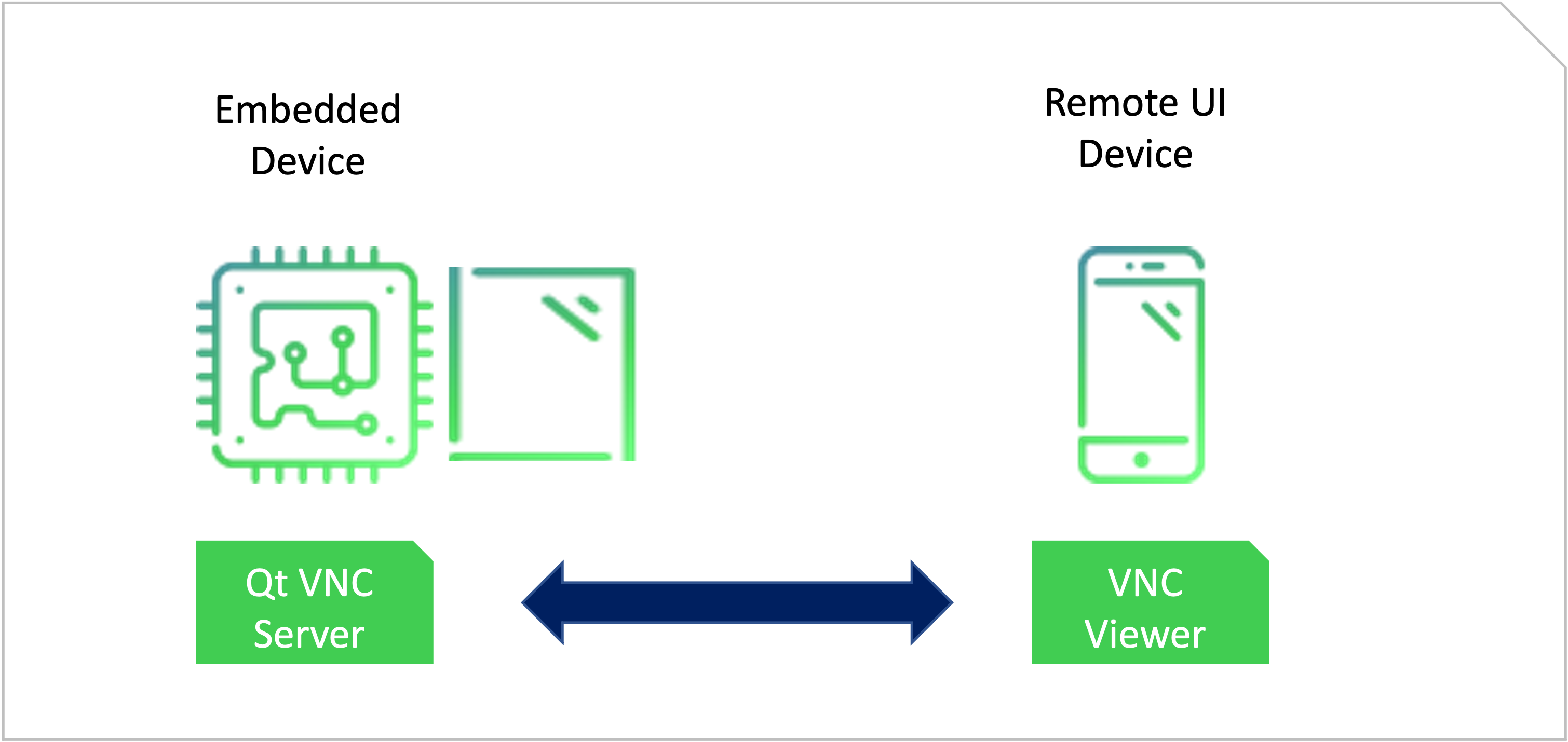 Virtual Network Computing (VNC) is a client/server architecture allowing one computing device to control another over a protocol called Remote Frame Buffer (RFB). To implement such a setup, for example, for a Qt application, one needs a Qt VNC Server component running on the embedded device and a VNC Viewer application running on the remote UI device.