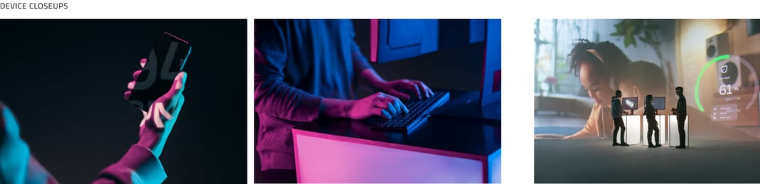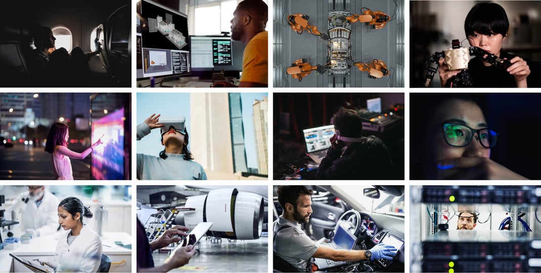 Product end user images show people in their work or everyday environments where technology plays a key role. They can also describe a process of product and software development. The images have max. one person at a time, using an embedded device, testing software, or using desktop/mobile application (e.g. VR goggles, a touchscreen)