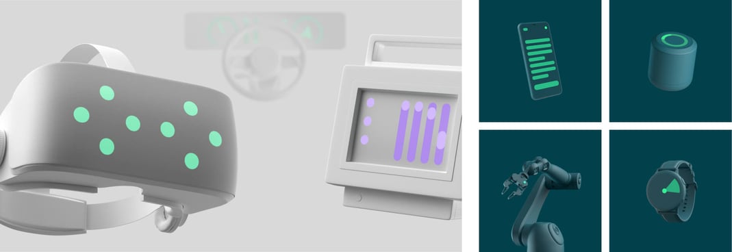 These general-level render images highlight Qt's role in different industries. Clay renders are key industry devices where software made with Qt is used.