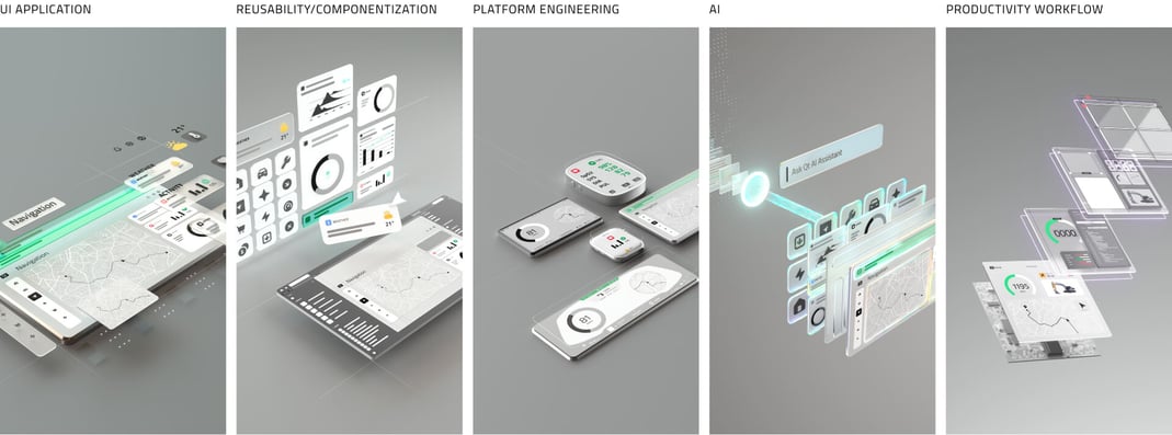 We use UI in images to visualize software and therefore our images should have a strong focus on user interface created with Qt. We value well-crafted UI to show what's possible with Qt. For high impact, we create suitable UI for each image or use existing UI from our latest demos created in-house.