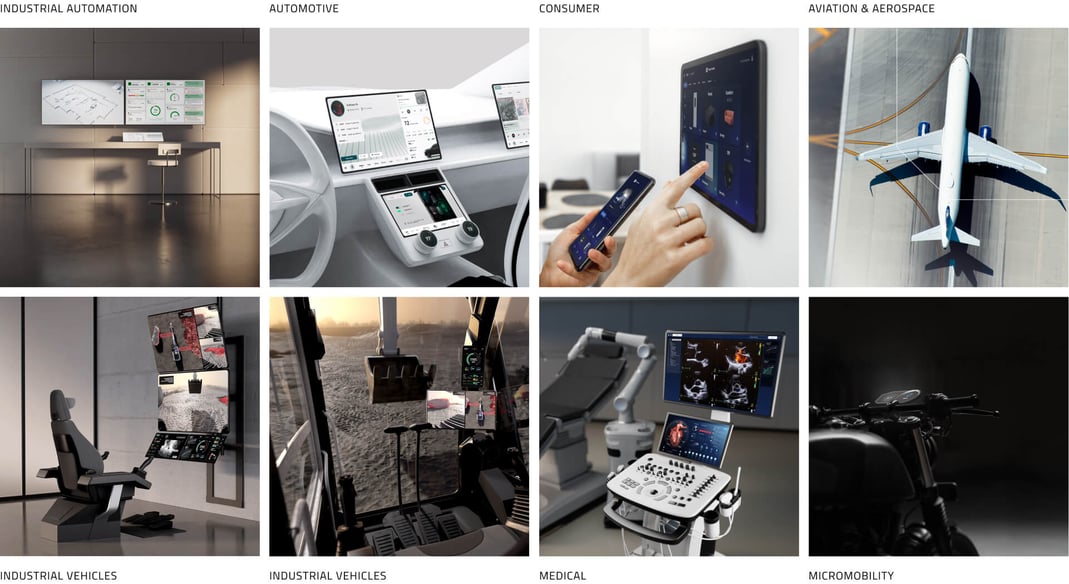 Key industry visuals that maintain a consistent look and feel across various industry verticals. Each visual incorporates unique elements relevant to the specific industry, focusing mainly on Qt's role in that industry. When possible, we show software made or tested with Qt. Industry visuals are modern, and professional, and appeal to a broad audience through high-quality images and graphics that capture attention and convey messages effectively.