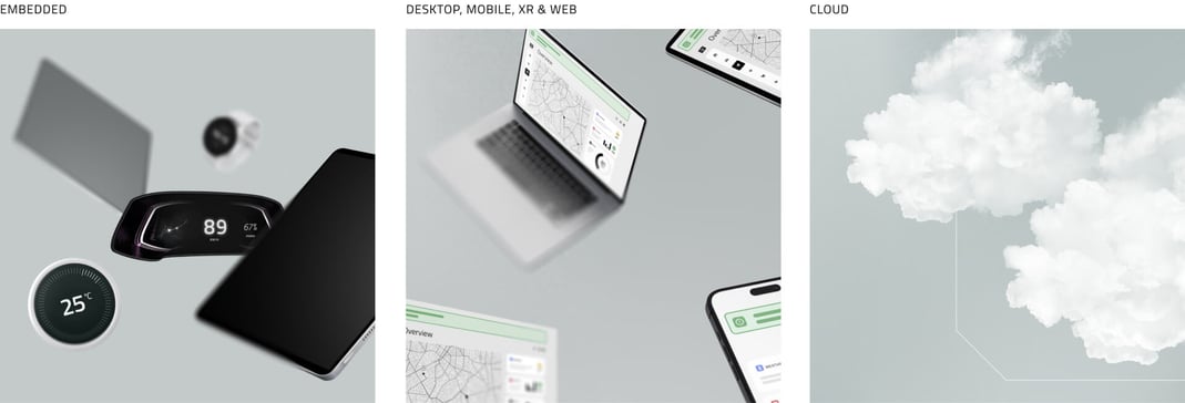 Compelling 3D images that communicate our tech’s core concepts. These can be found in two levels; high-level clay renders of devices and high-fidelity 3D renders of Qt technology foundations.