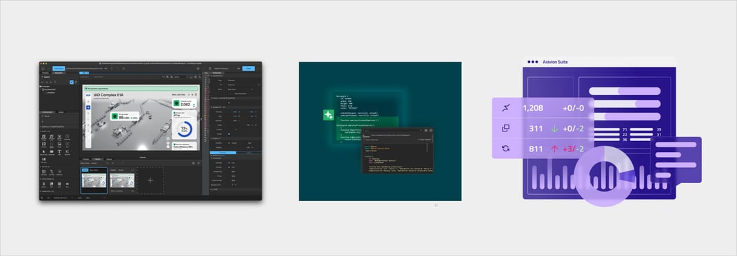 Block frames* and informative illustrations educate and help prospects understand the full potential of Qt. Product imagery often combines different views from our tools and demos to show capabilities, functions, and features. Product images can be high-fidelity or simplified.