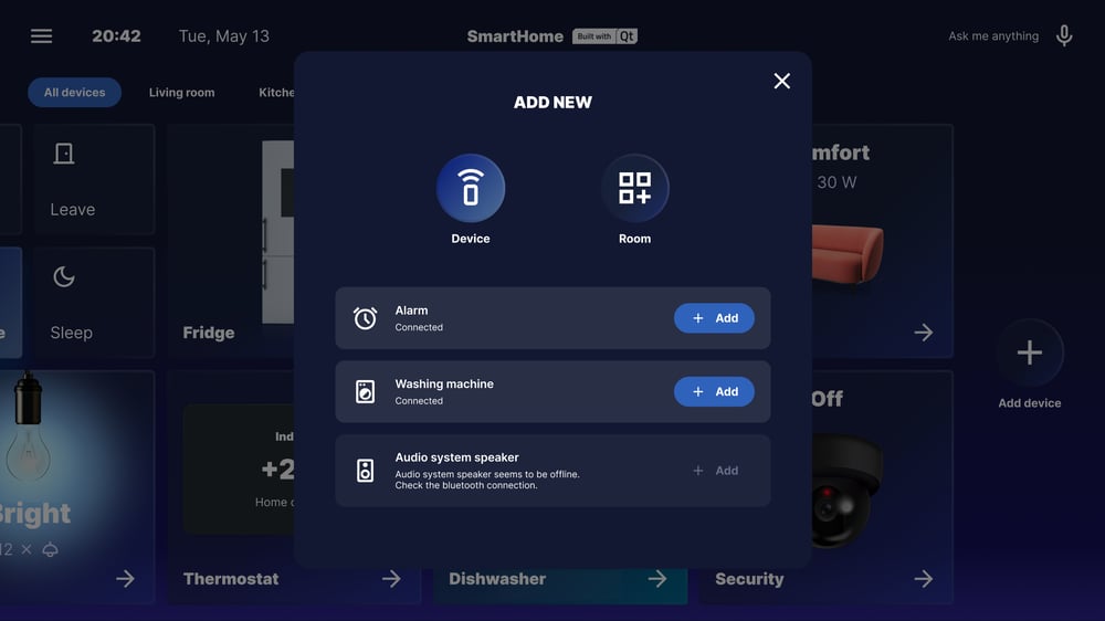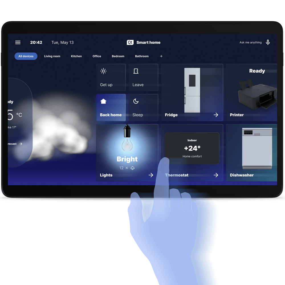 The need to create familiar, smartphone-like interactions across all scales of embedded devices common in our lives is easily met by using Qt platform-agnostic framework. Therefore, whatever our design decisions will be, we'll be able to port them across all screens of our home and personal devices.