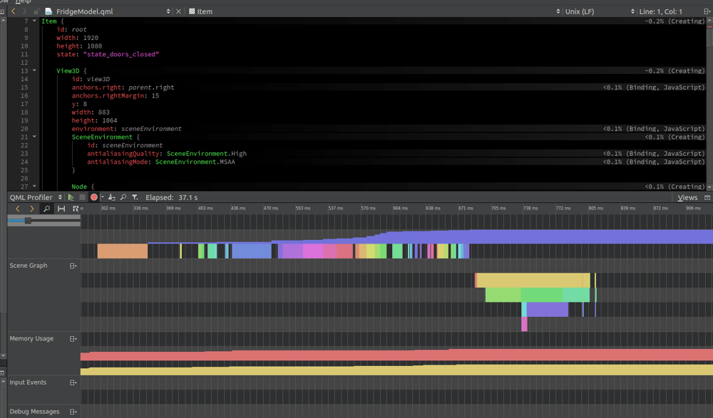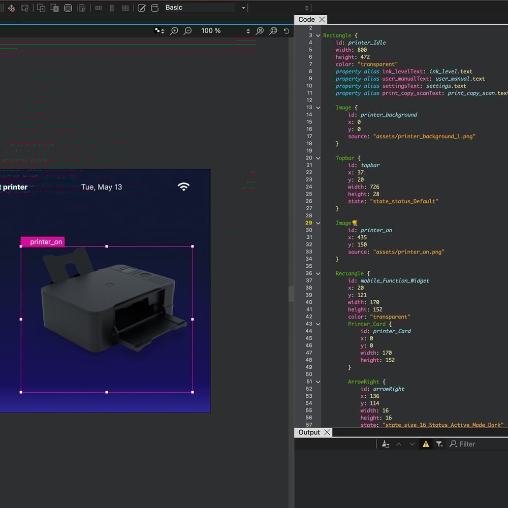 Instead, Qt Design Studio converts automatically the UI application into QML code that can be accessed by developers for backend work, profiling, debugging and quality assurance.