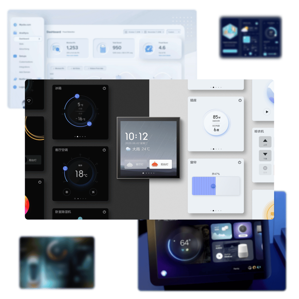 Our journey in to the future of the home living experience, spans from concepting to design and up to the deployment of functional UI applications on a range of target devices—from high-end hardware to cost-efficient low-end MCUs. Encompassing 3D graphics, smart functionalities and connectivity along our journey.