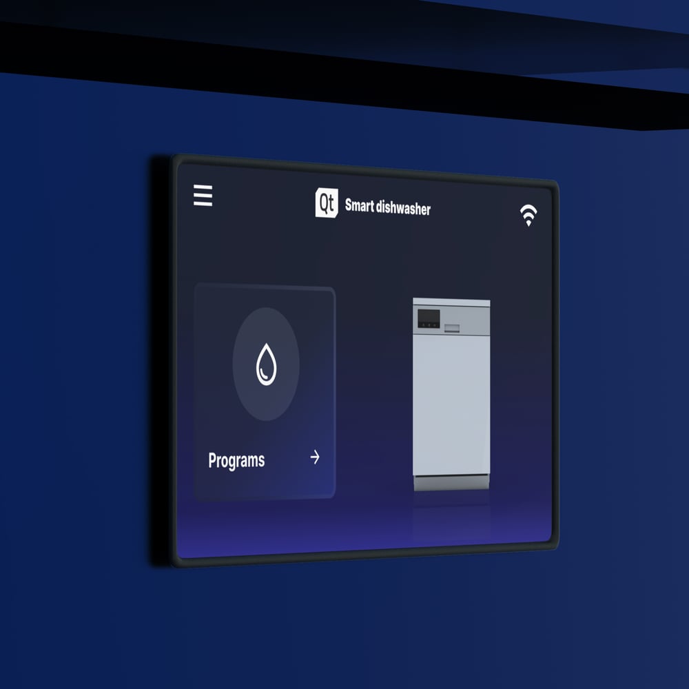 Printer and dishwasher use low-end touch-screen devices and Qt for MCUs for its lightweight performance. These devices support WIFI connectivity and, except for real-time 3D graphics, are built out of the same assets used in the other devices to ensure a consistent look-and-feel across the line.