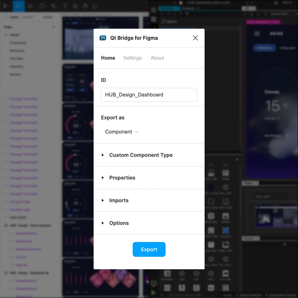 Each component and screen in Figma was imported to Qt Design Studio via Qt Bridge for Figma.