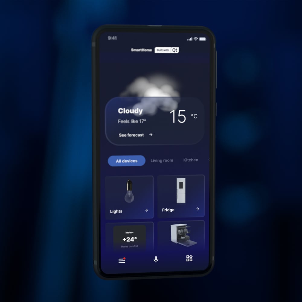 Our design choices drew on glassmorphism and 3D graphics, elements that Qt advanced graphics capabilities and platform-agnostic technology renders uniformly and seamlessly across all applications and screen types.