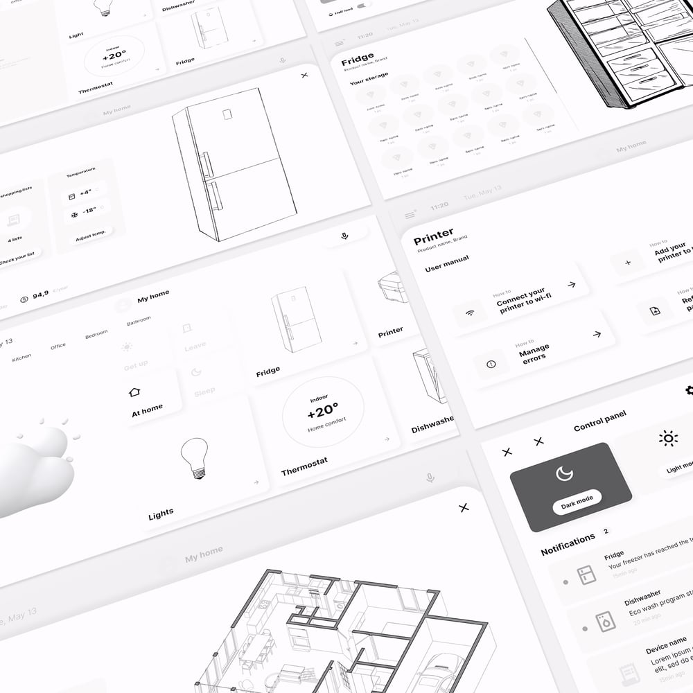 A UI application for each device (HVAC, fridge, printer, dishwasher), a companion app running on mobile and a HUB application for centralized control will be the core digital elements of our domestic environment.