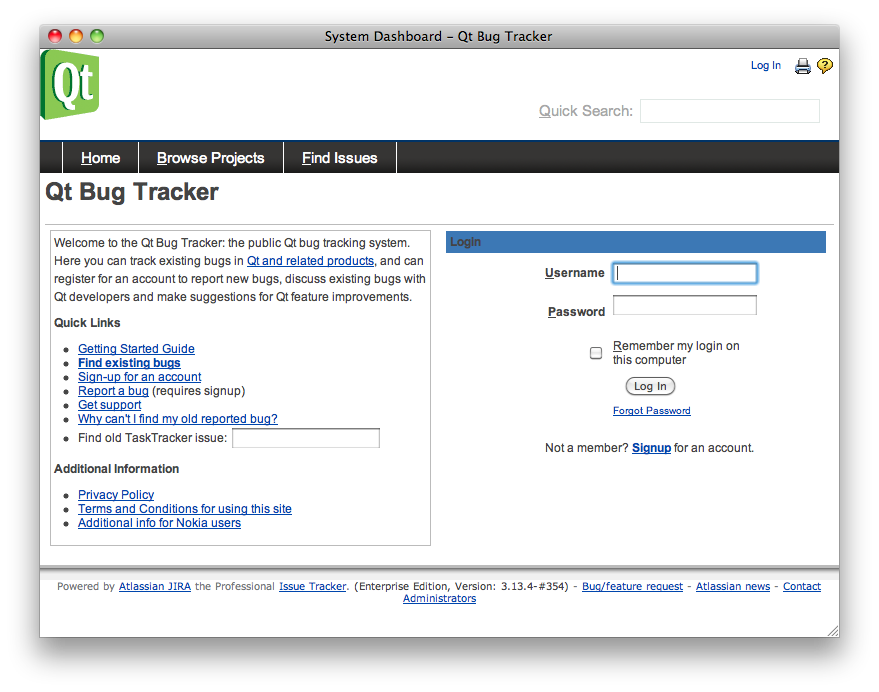 Qt のバグ追跡システムは昨年、Jira を用いた新しいものになりました。Qt Labs Blogs では "How to file a Qt bug report in the new bug tracker" という記事でその使い方を説明していますが、ここにその日本語版を作成しました。元の英語記事が出てからシステムに変更された部分もありますので、そのままの訳ではありませんが参考にしてください。