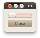 レイアウト管理の仕組みの中でウィジェットの親子関係も自動的に設定されるため、slider と button 生成時の親ウィジェットの指定は省略しています。上記のコードでは [5] の処理で親ウィジェットの設定がされます。