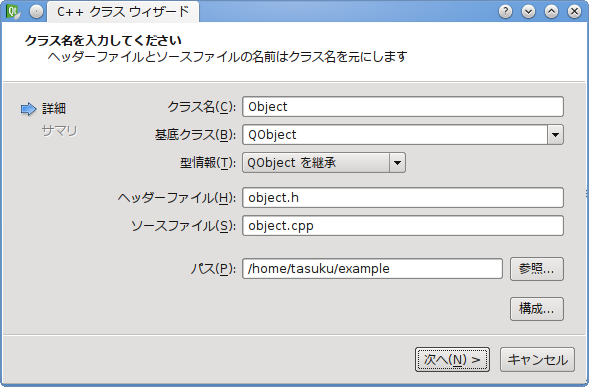 以上が、QObject の派生クラスを作成する際の典型的なヘッダファイル/ソースファイルになります。