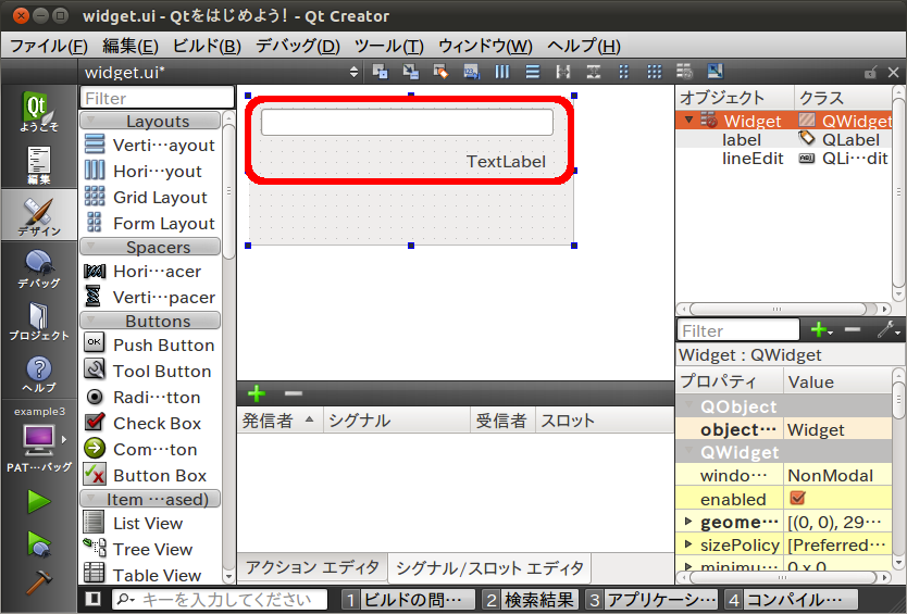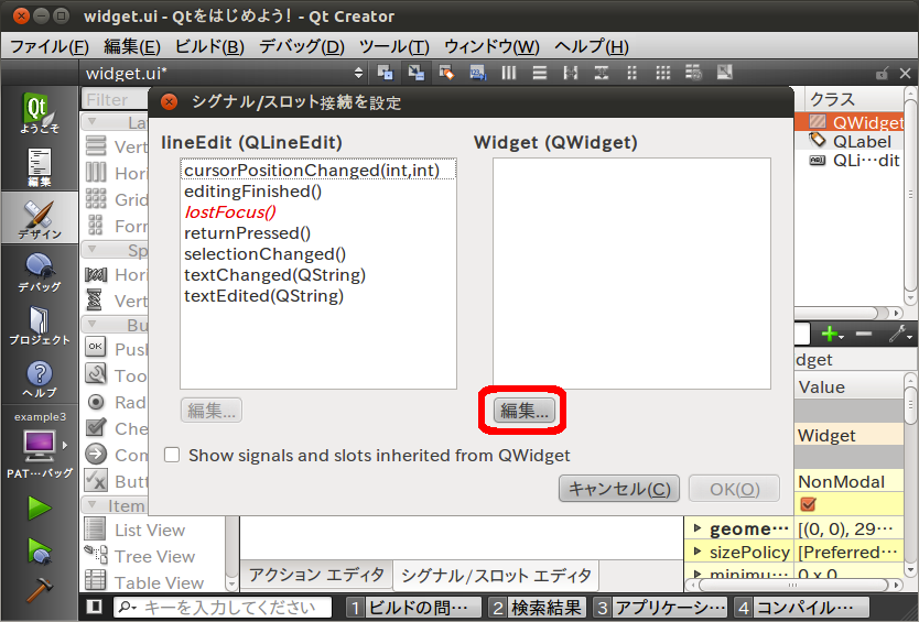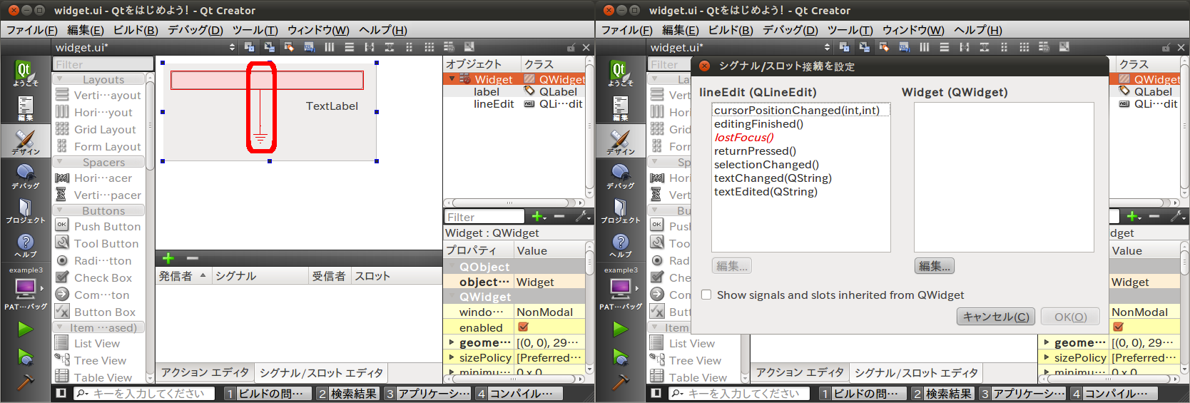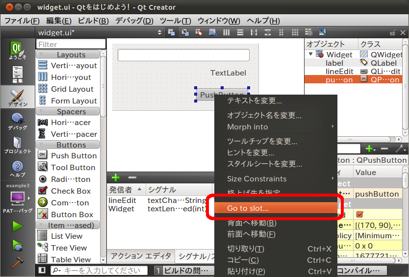 それではフォームを編集し、このシグナル/スロットを他のウィジェットと接続してみましょう。