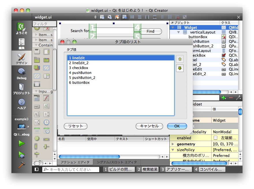 Qt をはじめよう! 第18回: タブオーダーを設定しよう