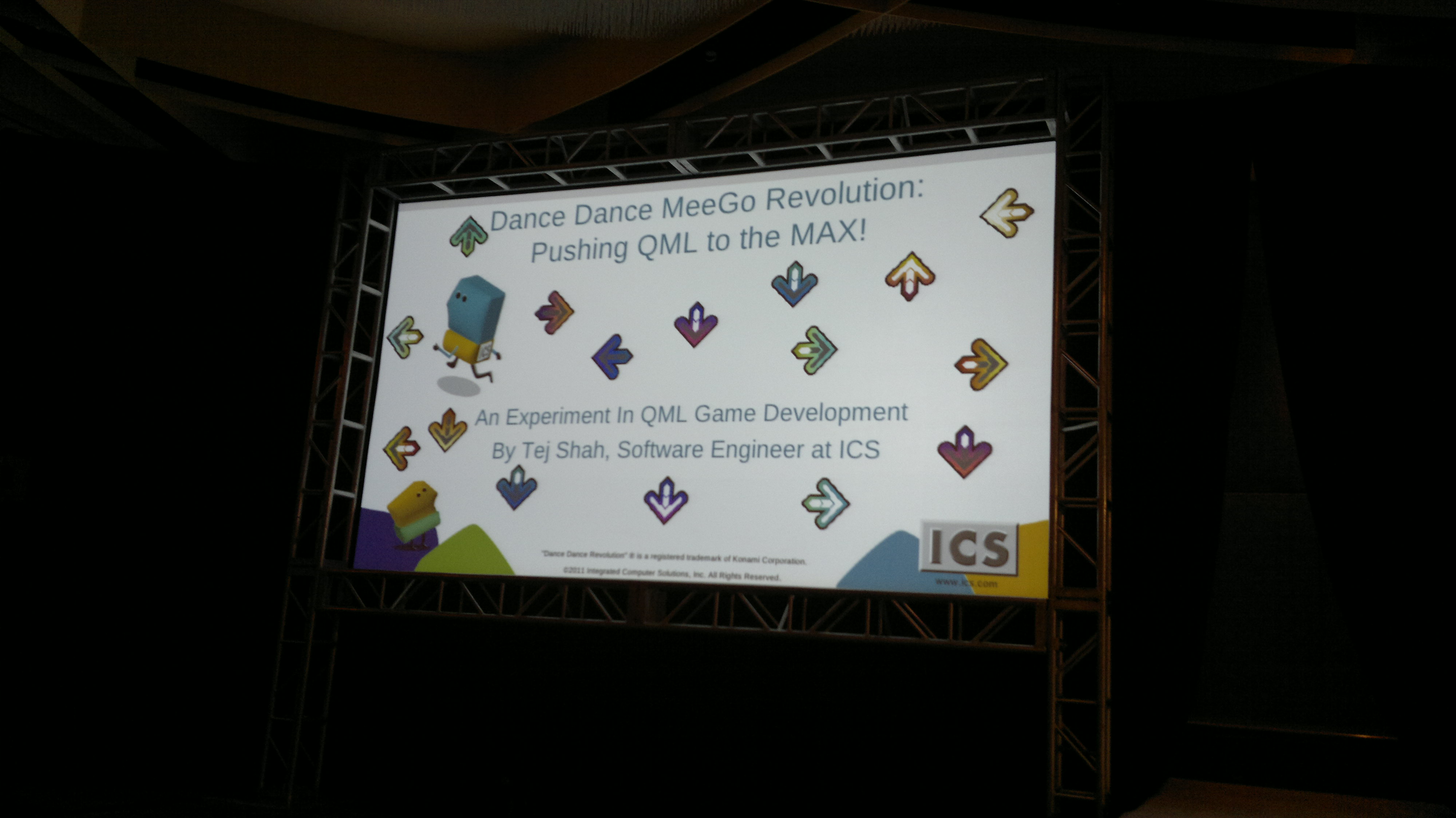 ICS のエンジニアかつゲーマーである Tej Shah 氏による Dance Dance Revolution を QML で作成し、MeeGo で動かしてみました!というセッションでした。