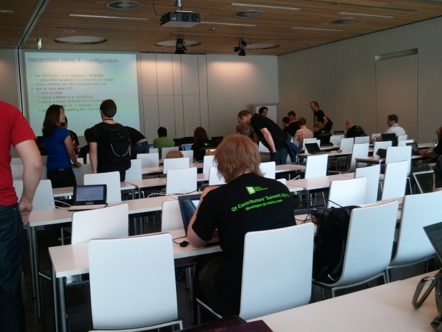 私自身は全てのセッションには参加していませんが、Android や iOS への移植に関するセッションも人気でした。Nokia では手がけていませんが以前から移植の要望の耐えなかったプラットフォームであり、Qt 5 ではオープンガバナンスの参加者次第でこれらのプラットフォームもサポートされる可能性が充分にあります。Android 版、iOS 版の双方で OpenGL を活用した QML の滑らかな動作が披露され、参加者の期待も高まったのではないかと思います。どちらのプラットフォームにもまだまだ課題があり、特に iOS 版は技術面以外のハードルも高く、少なくないため、今後の展開はまだまだ不透明なようです。それらのハードルを乗り越えて、是非 Qt の一端を担うプラットフォームとなって欲しいものです。
