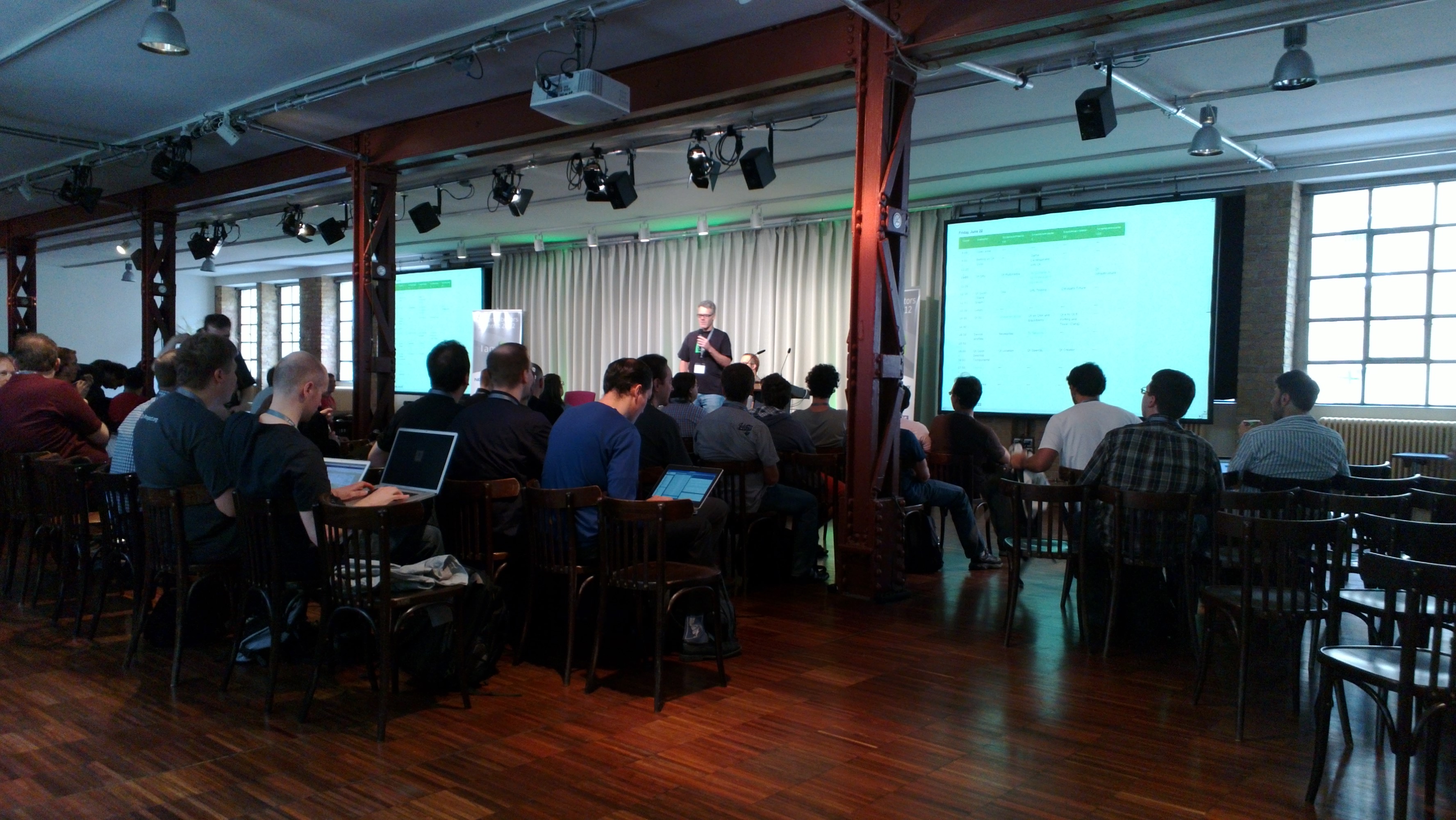 今年の会場はベルリン市内の Kalkscheune という場所でした。産業革命の時代にベルリンで最初に建設された工場で、その後様々な変遷を経て現在はイベントスペースやコンサート会場として利用されているそうです。