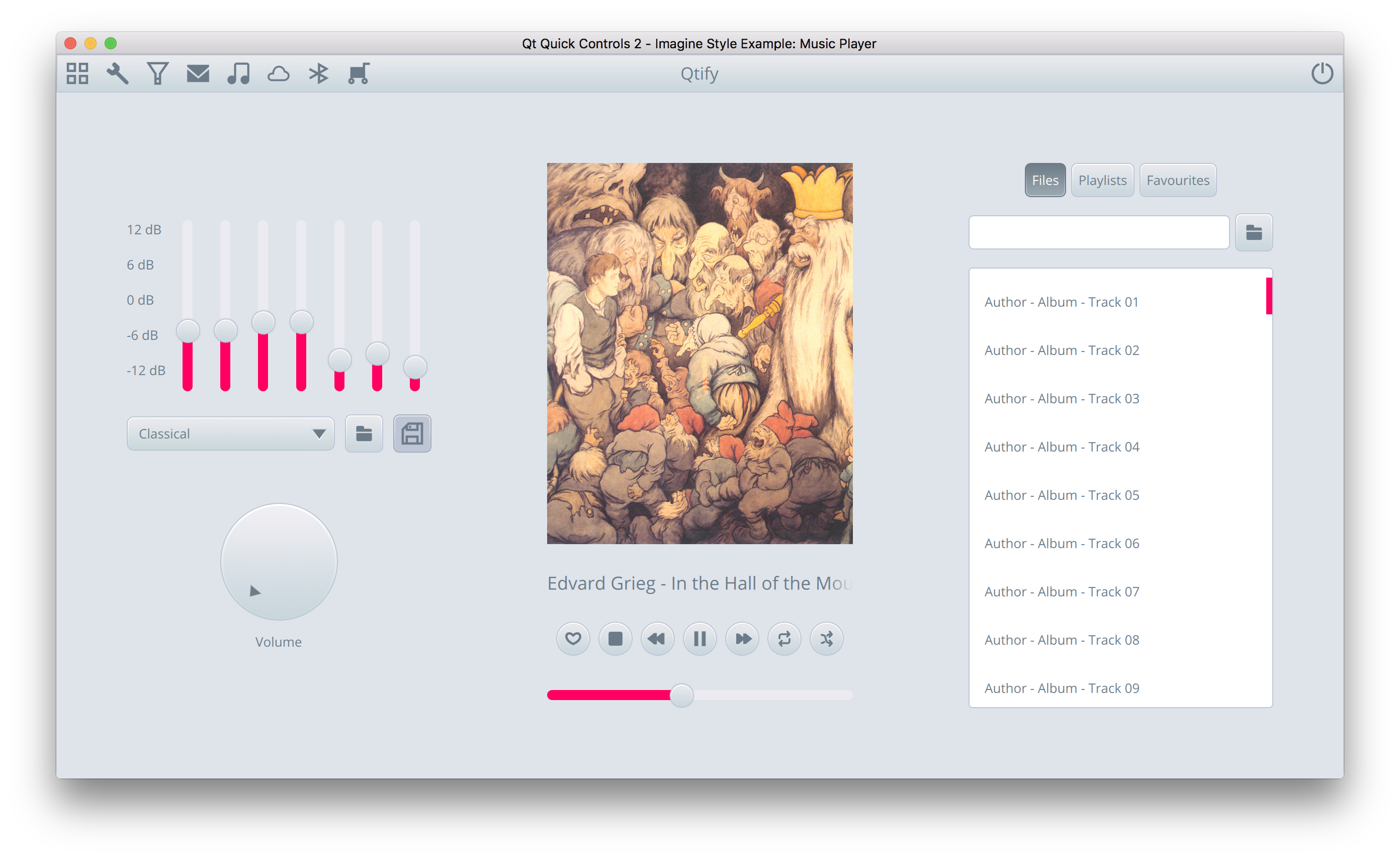 Qt Quick Controls 2 - Imagine Style Example: Music Player Qt Quick Controls 2 - ミュージックプレーヤー向けの Imagine スタイルのサンプル ( PSD)