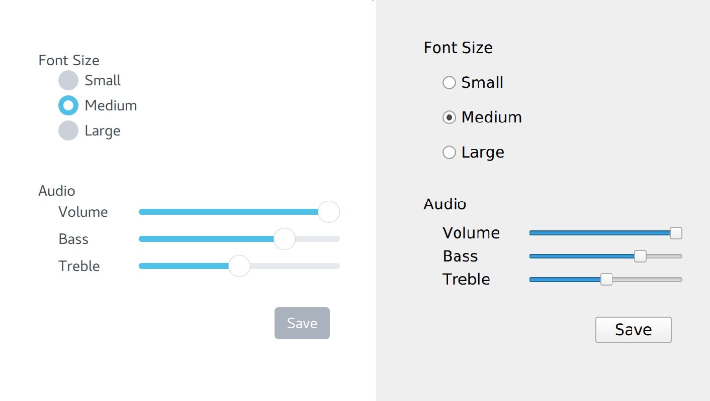 Qt Quick Controls 2 も様々な新機能が追加されました。まず、新たに2つのスタイルが追加されました。一つは画像を用いたスタイルで、これにより見た目のカスタマイズが非常に簡単にできるようになりました。もう一つは Fusion と呼ばれるスタイルで、特定のプラットフォームに依存しない、デスクトップ向けのルックアンドフィールを提供します。これらの2つのスタイルではパレットによるカスタマイズにも対応しています。