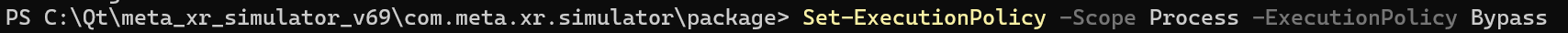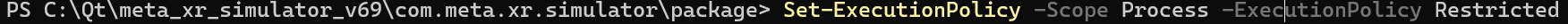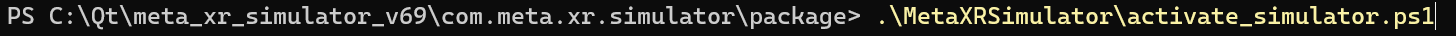 次に、Windows PowerShellを開き、meta_xr_simulator_v69/com.meta.xr.simulator/package/ MetaXRSimulator/activate_simulator.ps1を実行してシミュレータを有効化します。