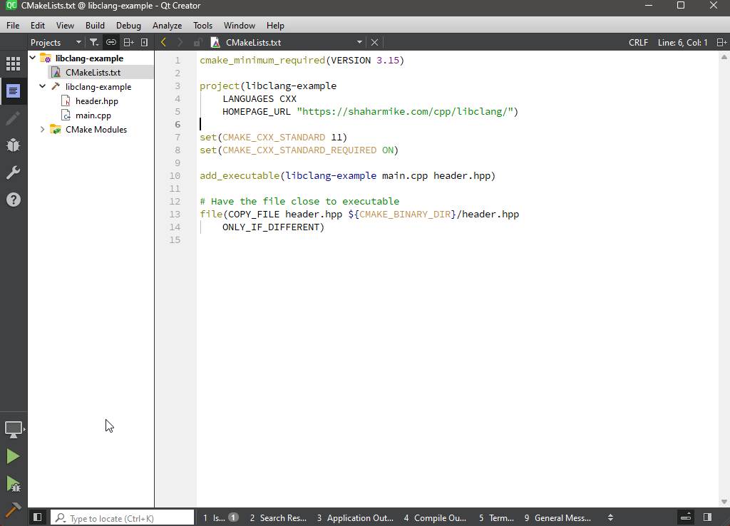 この動作を示すために、Using libclang to Parse C++ (aka libclang 101) の例を使用しました。なお、Windowsのllvm.orgリリースにはCMakeの検索モジュールが含まれておらず、単純にfind_packageを使用してlibclangライブラリを見つけることはできません。詳細については、#47222を参照してください。