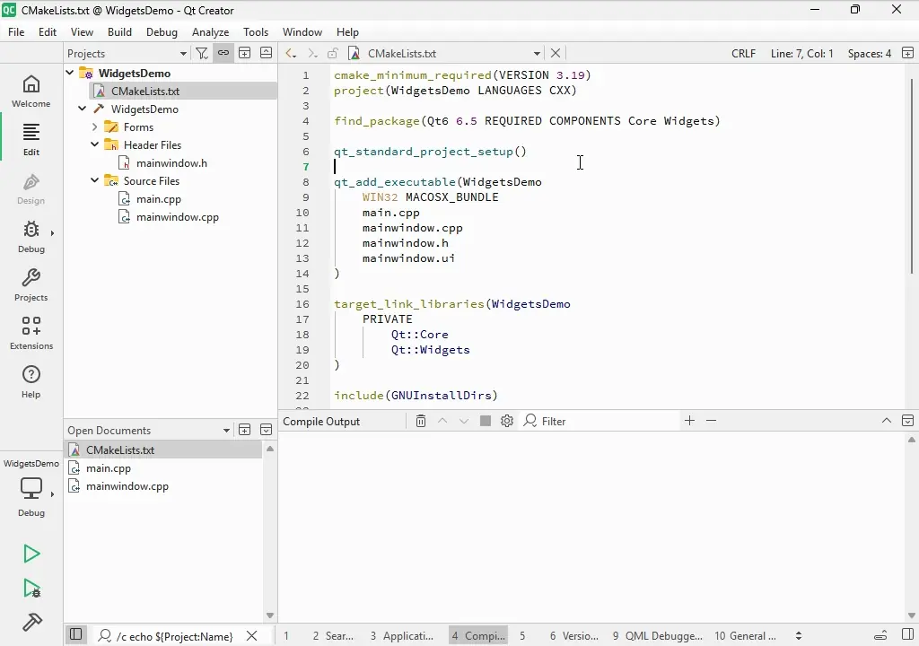 今回は、%{Project:Name} Qt Creator マクロについてです。以前の Qt Creator バージョンでは、プロジェクト名はプロジェクトファイル名の一部ではないため、親プロジェクトディレクトリが %{Project:Name} として設定されていました。すべてのプロジェクトファイルは CMakeLists.txt という名前で、qmake の project.pro とは異なります。