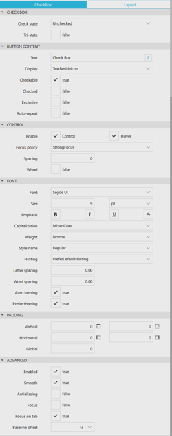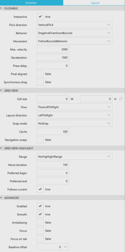 Qt Design Studio 2.2における大きな変更点の一つに、プロパティビューが刷新されたことがあげられます。プロパティビューのレイアウトが一新され、カラーピッカーなどの重要な要素が全面的に見直されました。特に、要素の配置と優先順位が大幅に変更されています。カラーピッカーとエディターは、プロパティビューのスペースを節約するためにダイアログに移動しました。