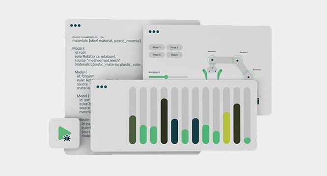 機能的なUIアプリケーションと自動生成されたQMLコードを提供する、直感的なビジュアル開発環境をご利用ください。