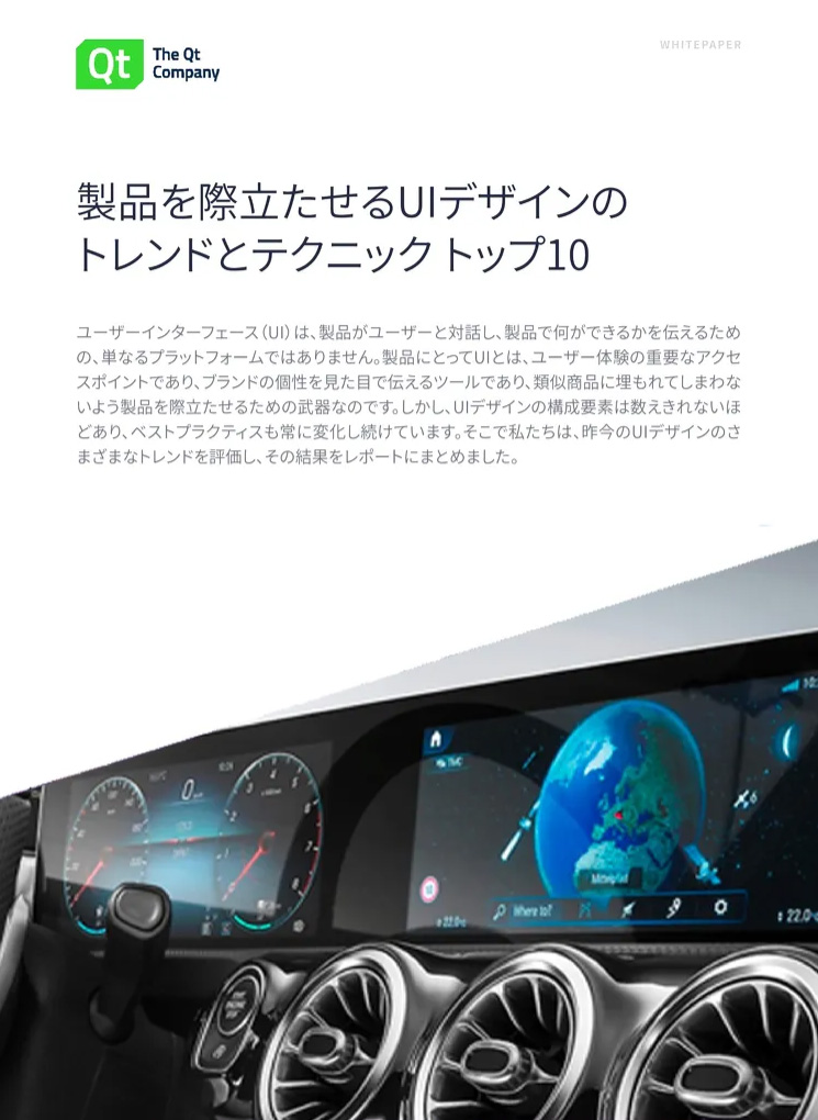 本ホワイトペーパーでは、現代的でダイナミックで機能的なUXを、機能安全対応の製品に組み込む方法について取り上げます。具体的なUXフレームワークとしてはQtを使いますが、できる限り一般的なアドバイスについても触れています。