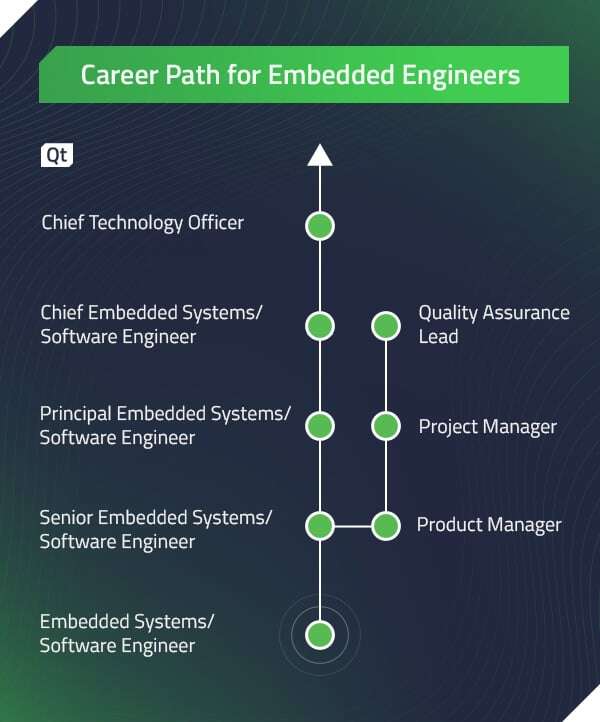 組み込みエンジニアは、組み込みエンジニアとしてのバックグラウンドを生かしながら、スキルを活かして別のポジションに進むこともできます。たとえば次のようなポジションがあります: