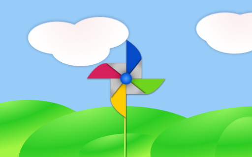 The foreground elements, representing the pole and the pinwheel in the user interface, are included as separate images.