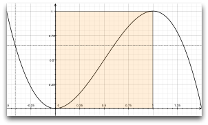 }The curve starts smooth at the 0.0 value, grows then and stops smoothly towards the 1.0 value. Here is a plot of the function in the specified range. For us, only the range from 0..1 is from interest.