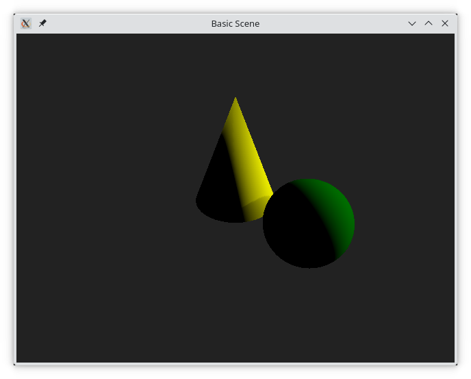 By setting the castsShadow property to true we ensure that the light generates shadows as can be seen on cone, where the shadow from the sphere is visible.