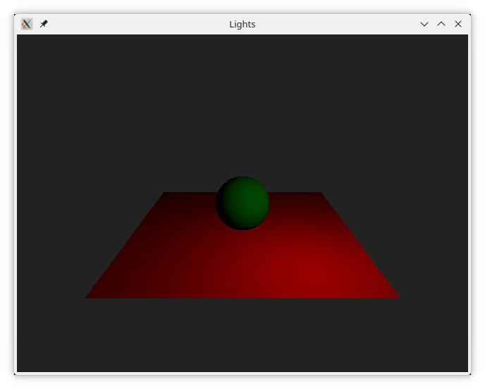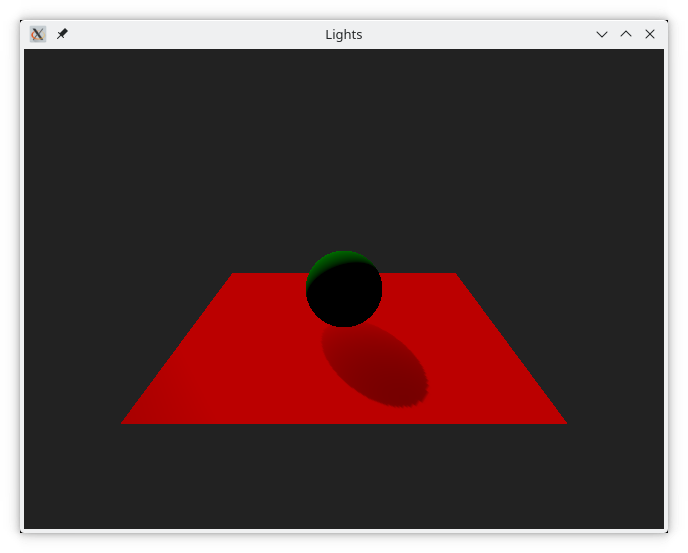 }In addition to the castsShadow property, all lights also has the commonly used properties color and brightness which control the color and intensity of the light emitted. The lights also has an ambientColor property defining a base color to be applied to materials, before they are lit by the light source. This property is set to black by default, but can be used to provide a base lighting in a scene.