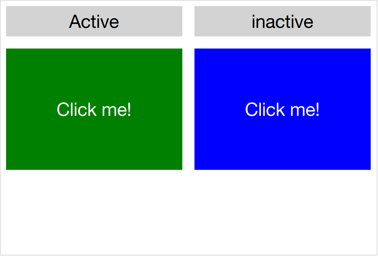 }In addition to the two clickable areas, a Connections element is used. This triggers the third animation when the active, i.e. the target of the element, is clicked.