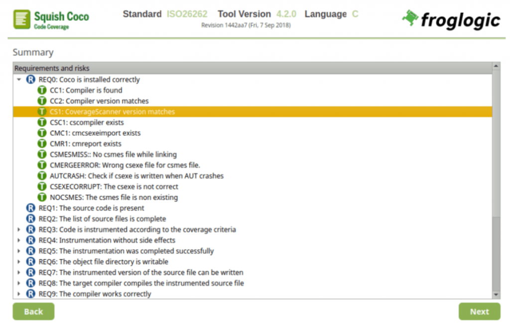 We therefore offers a Tool Qualification Kit for Squish Coco, a comprehensive, procedural approach to validating the tool’s behavior, tailored to the user’s processes, test environment and the safety protocols relevant to the software.