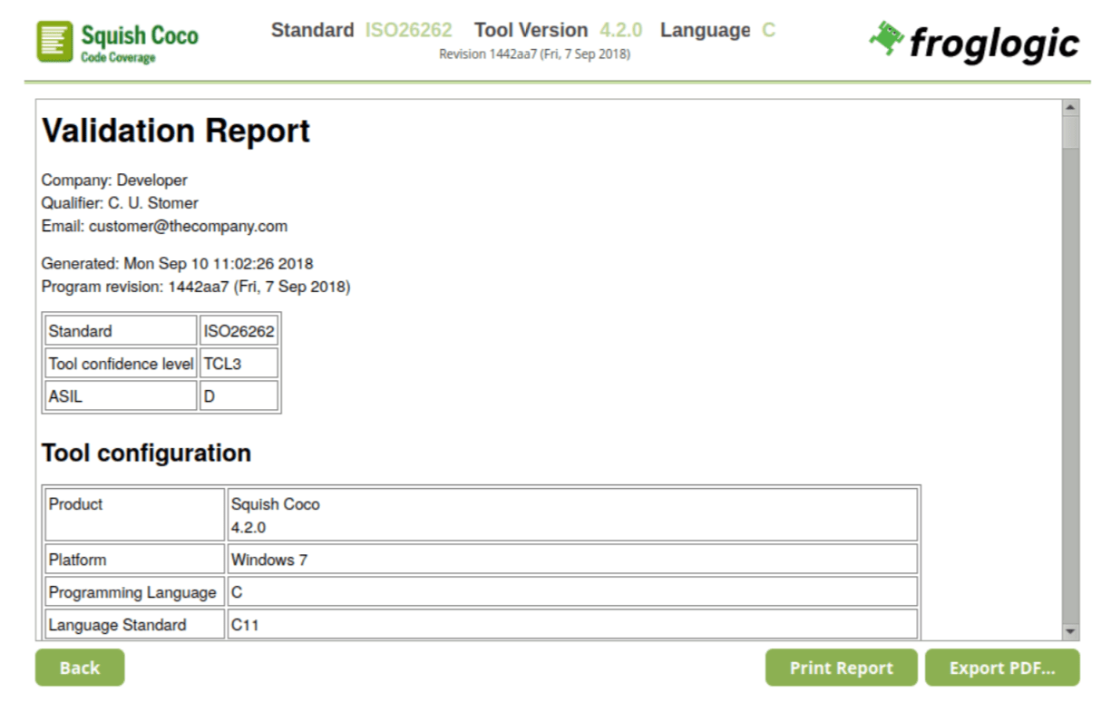 Qt works with the customer to design a custom Tool Qualification Report which can be delivered as a proof of a successful tool qualification process.